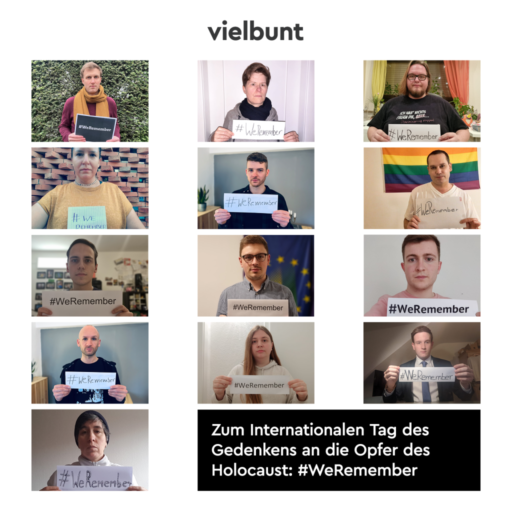 vielbunt will heute die Erinnerung an die Opfer des Holocaust wachhalten. Auch queere Menschen wurden von der Nazi-Diktatur zu Tausenden ermordet. #WeRemember https://youtu.be/UloLcL–O7M